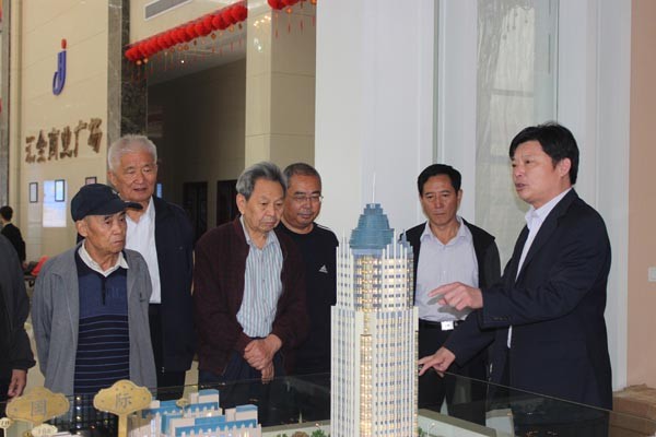 集團黨委書記、董事長、總經理李信強向老同志介紹集團樓盤